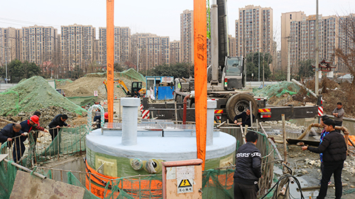 明珠泵業(yè)3.8米*16.3米大型一體化預(yù)制泵站成都火車西站雨污水改造項(xiàng)目實(shí)地安裝現(xiàn)場(chǎng)!
